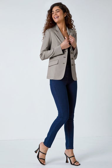 Button Detail Stretch Blazer from Roman. Crafted from our favourite stretch, bengaline fabric, this smart blazer is a must have staple that will see you through all seasons in style. It features full length sleeves and a feminine v neckline when fastened. Button detail adds an extra special touch, while the revere collar ensures a smart and sophisticated feel throughout. Wear to work with our matching stretch trousers or pair with a bodysuit and jeans for a more casual, off duty look!