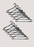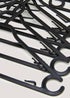 Stock up on handy wardrobe essentials with this pack of 10 black hangers. Made with a chic plastic finish to keep clothes in place and prevent slipping, they're an easy way to keep your outfits organised. More colours available. Dimensions: W37cm x H21cm.