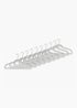 Stock up on handy wardrobe essentials with this pack of 10 grey hangers. Made with a chic velour finish to keep clothes in place and prevent slipping, they're an easy way to keep your outfits organised. More colours available. Dimensions: W 45cm x H 24cm (including hook).