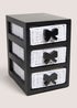 Organize your space in style with the 3 Mono Bow Drawers. Featuring a sleek monochrome design with charming bow accents, this set of drawers combines functionality and decorative appeal in one compact unit. Perfect for storing accessories, stationery, beauty essentials, or small household items, the drawers keep clutter neatly tucked away while adding a touch of elegance to any room.