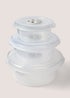 Learn moreRe-heat your favourite meals and snacks with ease with these practical microwave containers. Crafted with a round shape in a clear tone to match all interiors, the set comes with three containers in small, medium and large for easy storage. Constructed with a durable material, they're finished with an air vent to the lid and sturdy handles.