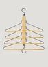 Learn moreReplenish your wardrobe with this handy multipack. It includes 4 hangers, each featuring a wood construction and sturdy metal hooks for great durability. Perfect for treating yourself to after a big shopping spree!