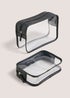 Stay organized in style with the 2 Pack Black Clear Cosmetic Bags. Designed with a sleek black colour and transparent material, these bags allow you to easily access your beauty essentials while keeping them neat and secure.