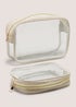 Stay stylishly organised with this 2 Pack Natural Clear Woven Cosmetic Bag set, the perfect combination of function and fashion for your beauty essentials. Designed with a sleek natural woven trim and clear body, these cosmetic bags let you easily see what’s inside while keeping everything neatly in place. Whether you’re packing makeup, skincare, toiletries, or travel-sized favourites, this duo keeps your items accessible. The practical zip closures secure your belongings, and the lightweight, easy-clean material makes them ideal for everyday use or travel.