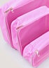 Learn moreKeep your suitcase in order with these practical packing cubes! Designed in a versatile pink tone, the set features three cubes in various sizes to ensure an easy fit for your holiday outfits. Crafted with a mesh cover lid so you can easily see your belongings, they're perfect for your next trip away.