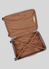 3) ABS Shell with Tan Details: Durable ABS case with elegant tan handles, zippers, and wheels, combining robust protection with sleek, stylish design.