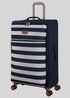 Introducing the IT Luggage Navy Stripe Trulite Suitcase, your perfect travel companion that combines style and functionality. This suitcase is adorned with a classic navy and white stripe design, exuding a timeless aesthetic. Crafted for durability and convenience, it features a lightweight yet robust construction to withstand the rigors of modern travel. The spacious interior is lined with a luxurious blue fabric, equipped with multiple compartments to organize your belongings efficiently. Glide through airports with ease thanks to its smooth-rolling wheels and ergonomic handle ensuring optimal manoeuvrability.