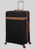 Jet away in style with this absolute classic from IT Luggage. Created with a ribbed hard shell in a black base colour, it's finished with practical carry handles (including one extendable handle), secure zip fastenings, and an X-shaped buckle fastening to the interior to keep the contents organised and safe. More colours available.