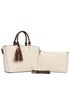 This large twin handle handbag comes with an optional, adjustable shoulder strap and an internal purse / make-up bag. H: 23cm x W: 32cm x D: 13cm.