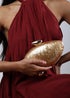 Make a statement with the ocean-inspired Benna Marble Acrylic Clutch In Gold, designed to turn heads at any special event. Its sculpted silhouette and glossy marbled finish evoke luxurious, artistic charm.