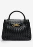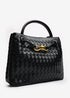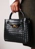 Where's That From Luna Black Woven PU Tote Bag Gold Detail