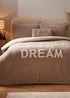 Stay cozy and stylish with the Beige Slogan Fleece Duvet Set, designed to add warmth and personality to your bedroom. Featuring a snuggle sleep dream slogan and ultra-soft fleece fabric, this duvet set is perfect for chilly nights and relaxing in comfort. The soft beige background complements any bedroom style, adding a subtle, calming look while enhancing the cosy slogan details.