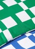 Bring a classic and colourful design into your bedroom with our blue checkerboard duvet set. With a green and a blue side your bedroom can always have a switch in colours, adding a vibrant pop of colour to your room everyday! The checkerboard print brings a lively feel to your decorations, adding colour and light in every positive way.