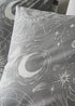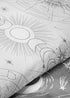 This duvet set features a reversible design with one side showcasing white with grey celestial patterns, and the other side in reverse, featuring grey with white celestial designs. The celestial motifs add a touch of mystique and elegance to your bed, creating a serene and stylish atmosphere in your bedroom. Crafted for both comfort and aesthetic appeal, this duvet set is perfect for those who appreciate a cozy and chic sleep space.
