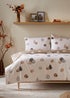 Warm up your bedroom with our natural pumpkin duvet set. Featuring a charming pumpkin print against a warm cream backdrop, this duvet set will add a cosy, seasonal touch to your bedroom. The design and fabric adds a soft and warm feel, ensuring a comfortable night's sleep. The other side of the duvet cover features a brown background colour with white pumpkin prints all over, making both sides a cosy addition to your bedroom.