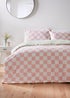 Learn moreAdd fun colours to your bedroom aesthetic with this duvet set. In light pink with a charming green reverse for two timeless looks in one, this uber comfy set is finished with a classic checkerboard design. Includes one matching pillowcase on the single size and two matching pillowcases on the double and king sizes.