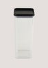 Keep your food fresh for longer with the help of this tall storage container. With a sleek and sturdy black lid, its simple design is sure to slot seamlessly into traditional and modern homes alike. What's more, it can easily be stacked for an easy space-saving solution. More sizes available. Dimensions: H23cm x 10cm. Capacity: 1.5L.