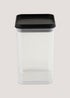 Keep your food fresh for longer with the help of this tall storage container. With a sleek and sturdy black lid, its simple design is sure to slot seamlessly into traditional and modern homes alike. What's more, it can easily be stacked for an easy space-saving solution. More sizes available. Dimensions: H15cm x 10cm. Capacity: 1L.