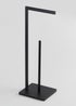 This free standing toilet roll holder is crafted from modern black metal for a durable and sturdy construction. A tidy and functional accessory that will seamlessly slot into many interiors, this item is part of a coordinating range which will add contemporary monochrome style to any bathroom.