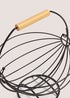 Pop your favourite fruits into this uber stylish basket. Created with black wire for a sturdy construction, it comes with a trusty wooden handle for easy lifting and placement. Sure to bring some contemporary excellence into any kitchen. Dimensions: 28cm x 24.5cm x 23cm.