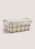 Learn moreIntroducing our Black Wired Storage Basket, a perfect blend of style and functionality designed to elevate your home organization game. Crafted with durable black wire, this basket ensures sturdiness and longevity. It features an open design allowing you to easily view and access your belongings. The included natural-toned fabric liner adds a touch of elegance while protecting both the basket and your items from wear and tear. With its versatile design, it’s ideal for storing a variety of items from magazines to toys, making it a must-have organizational accessory for any room in your home.