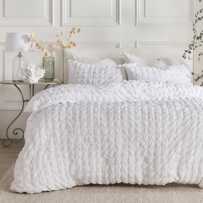 White Seersucker Frill Duvet Set