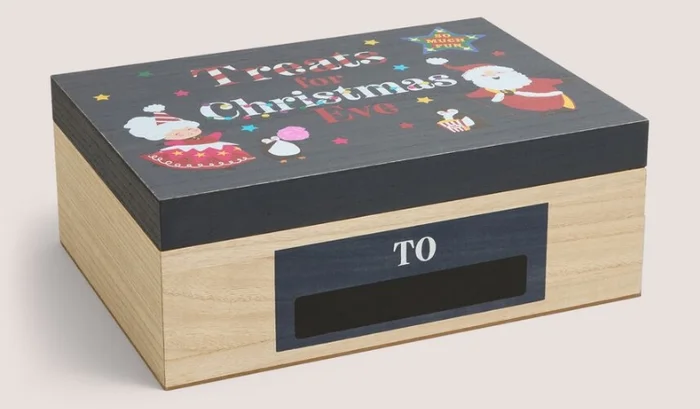 When it comes to choosing your box, a simple cardboard option works well. At the same time, there are lots of beautiful Xmas Eve boxes with seasonal designs to make the occasion a little more special. If you want to invest in a tradition, consider a carved wooden box you can use year after year. Or why not use a cardboard box, and spend the evening decorating the outside with a true festive feel. You could paint, use stamps or cover it with stickers or glitter, the possibilities are endless. Fill your box with a mug, stocking or a sack to leave out for Father Christmas in the morning to really set the scene.