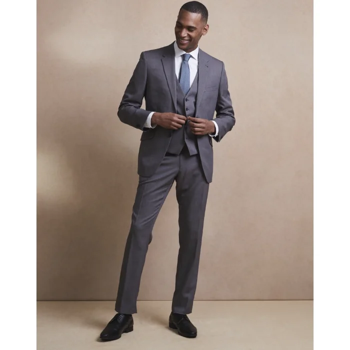 The tailored fit suit is a stylish and traditional fit offering a wider chest for added comfort. The trousers are fuller in the thigh and tapered slightly on the hem. Choose from classic black or blue, or mix it up with a grey suit option.