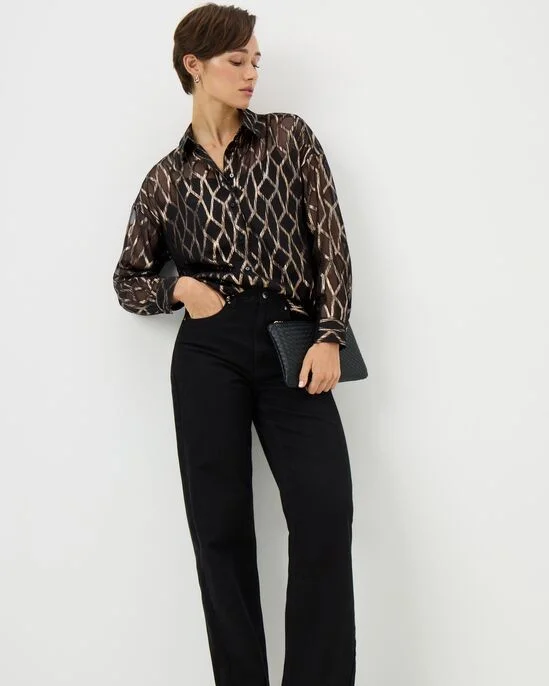 Papaya Petite Black Sparkle Foil Long Sleeve Shirt