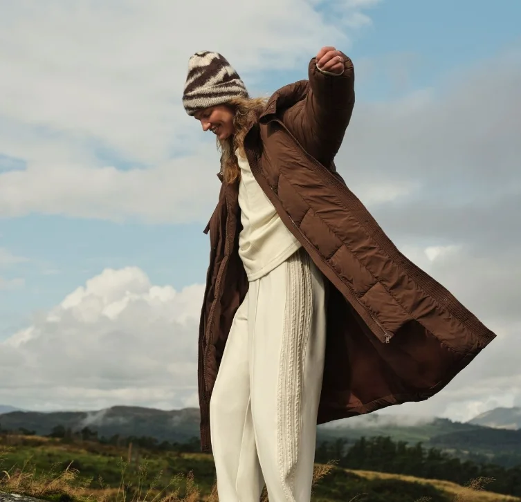 Layering is key to winter dressing. Start with a thermal or long sleeve top as your base, add a cosy knit and finish with a statement coat. For crisp countryside walks, think padded coats or parkas for casual comfort, tailored wool coats for a smart edge or shearling jackets for that touch of rustic charm. Don’t forget the finishing touches, a chunky scarf, knit hat and gloves will keep the chill out while completing your look.