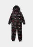 They'll enjoy a cosy gaming marathon in this super cool onesie. Created with snuggly black fabric that's printed with game controllers and pizzas wearing festive Santa hats, a toasty hood, a handy zip fastening to the front, and snug cuffed detailing to the arms and legs round off the design.