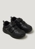 Keep your youngster comfy on school days and at the weekends in these cushioned and breathable trainers. Fashioned with coated leather for extra durability' this pair features a handy double riptape fastening design for easy on/off, together with subtle panel detailing and a heel hoop for added practicality. Perfect for smartening up their shoe collection.