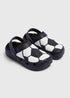 Keep his feet snug and stylish with our Boys Black Football Warm Lined Clogs. Featuring a fun football design and a soft, fluffy lining, these clogs are perfect for keeping little feet warm and comfy on chilly days. The lightweight, slip-on style with a secure back strap makes them easy to wear, ideal for playtime, lounging, or quick trips outdoors.