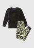 Boys Black Gamer Velour Top & Bottom Pyjama Set (7-13yrs)