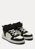 Learn moreHow cool are these super stylish high top trainers? Perfect for their laid-back weekend wardrobe, they come in a timeless black and white mix and are crafted from trusty PU fabric. Featuring riptape strap fastenings for easy security, the design is finished with elasticated laces and back heel hoops for effortless on/off. Team with shorts or joggers.