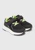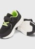 Your little one will love these cool black trainers. In a classic sports shoe design, they come with a practical riptape fastening for easy on/off and an added pop of colour in the form of neon green lining.