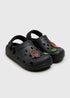 Boys Black Smiley Badge Clogs (Younger 8/9-Older 5/6)