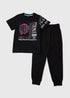 Boys Black World Foil Print Upsec Pyjama Set (4-12yrs)