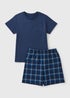 Boys Navy Check Short Pyjama Set (7-13yrs)