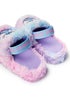 Little explorers, gather around! Are you ready to embark on a wild adventure with our Disney Lilo & Stitch Girls Slipper? These sliders aren't just any footwear; they're like a magic carpet ride to the tropical paradise of Hawaii, where every step is filled with fun and mischief! Crafted in vibrant pink and blue hues, these sliders feature ombre fur lining that will keep your feet as snug as Stitch in a hammock. But hold onto your coconuts, because there's more! These sliders are as cool as they are comfy. With a wide elastic heel strap sporting printed stitch text, they'll stay put no matter how many hula hoops you spin around your room. And check out the large applique printed patch of Stitch himself! Complete with embroidered inner hearts and contrast edge stitching, it's like having your own little blue alien buddy right on your feet. Whether you're lounging around the house, hosting a Stitch-themed sleepover, or planning your next Hawaiian luau, these sliders are the ultimate accessory for any little fan. They're so comfy, you'll feel like you're walking on clouds; just watch out for Stitch trying to hitch a ride on your feet! So, whether you're treating yourself to a slice of tropical paradise or looking for the perfect gift for a fellow Stitch fanatic, these Lilo & Stitch sliders are guaranteed to bring a smile to your face. Slip them on, kick back, and let the magic of Disney's beloved animation whisk you away on a Hawaiian adventure. It's time to embrace your inner islander with Stitch by your side!