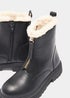 Girls Black Faux Fur Zip Up Boots (Younger 10-Older 5)