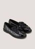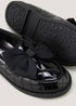 Learn moreCute and comfy in equal measure, these trendy school shoes are perfect for young trendsetters. Styled with a black patent outer, they feature the signature loafer appearance, together with a plush quilted texture and an oversized bow. A star patterned cleated sole ensures a sturdy fit and good grip.