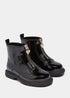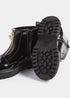 Learn moreA more unique spin on the classic winter boots, say hello to this super pretty pair for little ones. In black patent fabric for a glossy look and featuring handy loops to the back for easy on/off, the luxurious gold zips at the front feature a heart charm for added sweetness. Easy side zip fastenings and cleated soles for good grip complete the shoes.