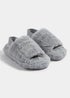 Provide your little one with snuggly evening comfort by treating them to these cosy slippers. Created with fluffy grey fabric for a toasty feel, they come with a chunky single strap, together with an elasticated back strap to ensure an easy fit on their feet.