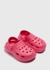 Learn moreEnsure that she heads to the beach or pool in comfort with these lightweight clog sandals, finished in pink, complete with a glitter patterned strap. In an easy, slip-on style, the contoured footbed and cleated sole provide sturdy grip.