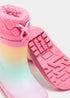 Your little one will love splashing in muddy puddles with these sweet wellies! Styled in pink, green and orange, they feature a charming ombre tone, a cleated sole for extra grip and a quilted top for added warmth. Crafted with a soft and durable lining, they're finished with an adjustable toggle to the top for a personalised fit.