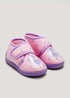 Add some magic to their evenings with this super cute pair of slippers. Crafted with sturdy soles for extra support, the slippers feature soft pink uppers with purple trims, riptape straps, and unicorn prints for an added dash of wonder.