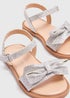 Girls Silver Glitter Bow Occasion Sandals (Younger 4-12)