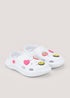 Learn moreCute and comfy in equal measure, these cool clogs are a must on her holiday checklist. Perfect for around the pool and heading to the beach alike, the white clogs are trimmed with brightly coloured badges for a fun finish. An optional strap back helps keep them in place, whilst the contoured footbed and cleated sole provide sturdy grip.