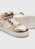 These high-top white trainers are a classic and cool choice for any youngster. With their timeless design and sturdy construction, these shoes are perfect for everyday wear. The gold and white design adds a touch of style to every outfit while the lace ups and rip tape strap adds extra support to ensure a secure fit. Your little one will look and feel cool in these gold and white high tops.